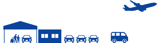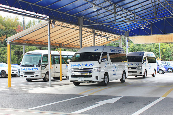 駐車場にご到着後、事務所前での手荷物の積替え、指定位置への駐車、受付(ご到着日の確認、ご利用料金のお支払い、お迎え場所のご案内)が終了しましたら5分前後の間隔で順次送迎いたします。(※朝夕のお客様が集中する時間帯は、10分前後の時間調整がございます。)