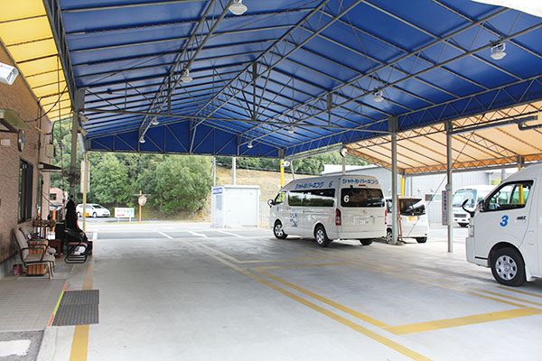 ハイエース4台とマイクロバス2台で、5分前後の間隔で順次送迎。(※朝夕のお客様が集中する時間帯は、10分前後の時間調整あり)