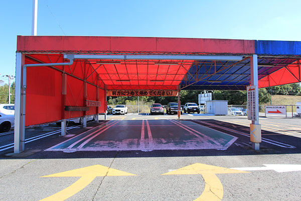 お帰りの際に雨天の場合は、赤テントの下でお荷物をお客様のお車に積み替えます。積み替え後は、速やかに発進していただけるようお願いいたします。