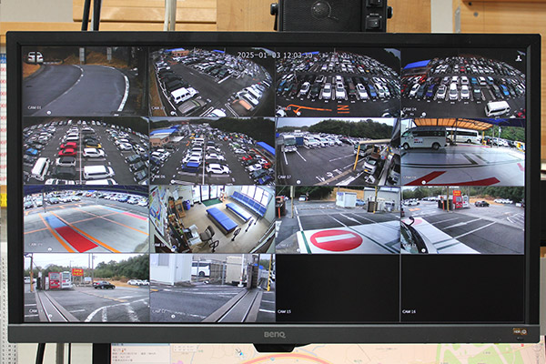 セコム社の高感度監視カメラ13台を設置、常時監視・録画。周囲は高さ2mのフェンスを設置。夜間においては、8灯のLED照明により十分な明るさを確保するとともに、閉店後は門扉を閉めしっかり施錠。